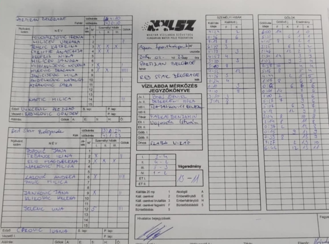 R2 Partizan Belgrade vs Red Star Belgrade 13:11 – Match report (PDF)