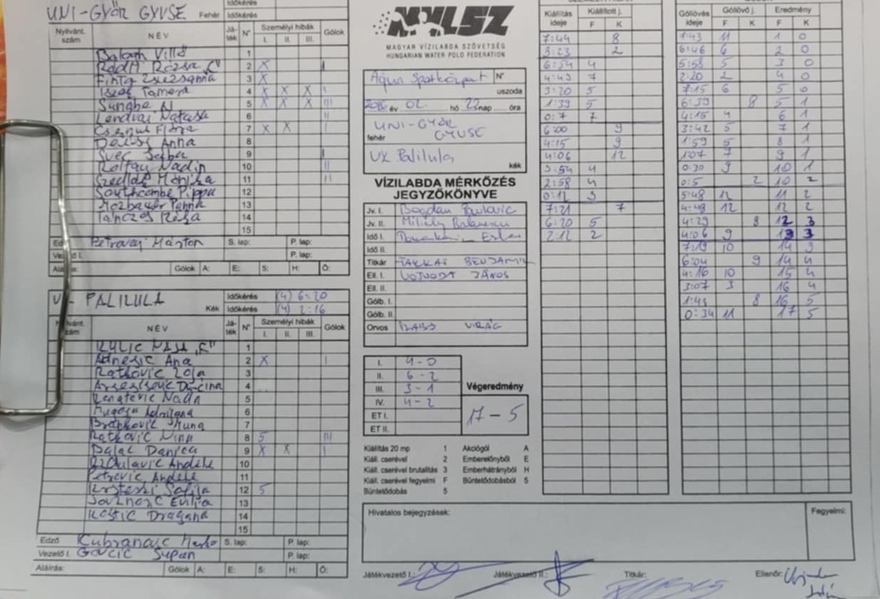 R2 Uni-Győr GYVSE vs Palilula 17:5 – Match report (PDF)